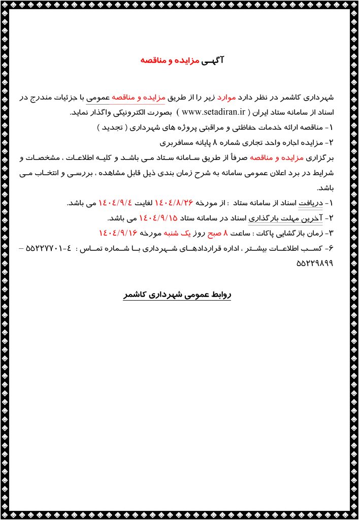 فراخوان هنرهای شهری کاشمر نوروز 1405...