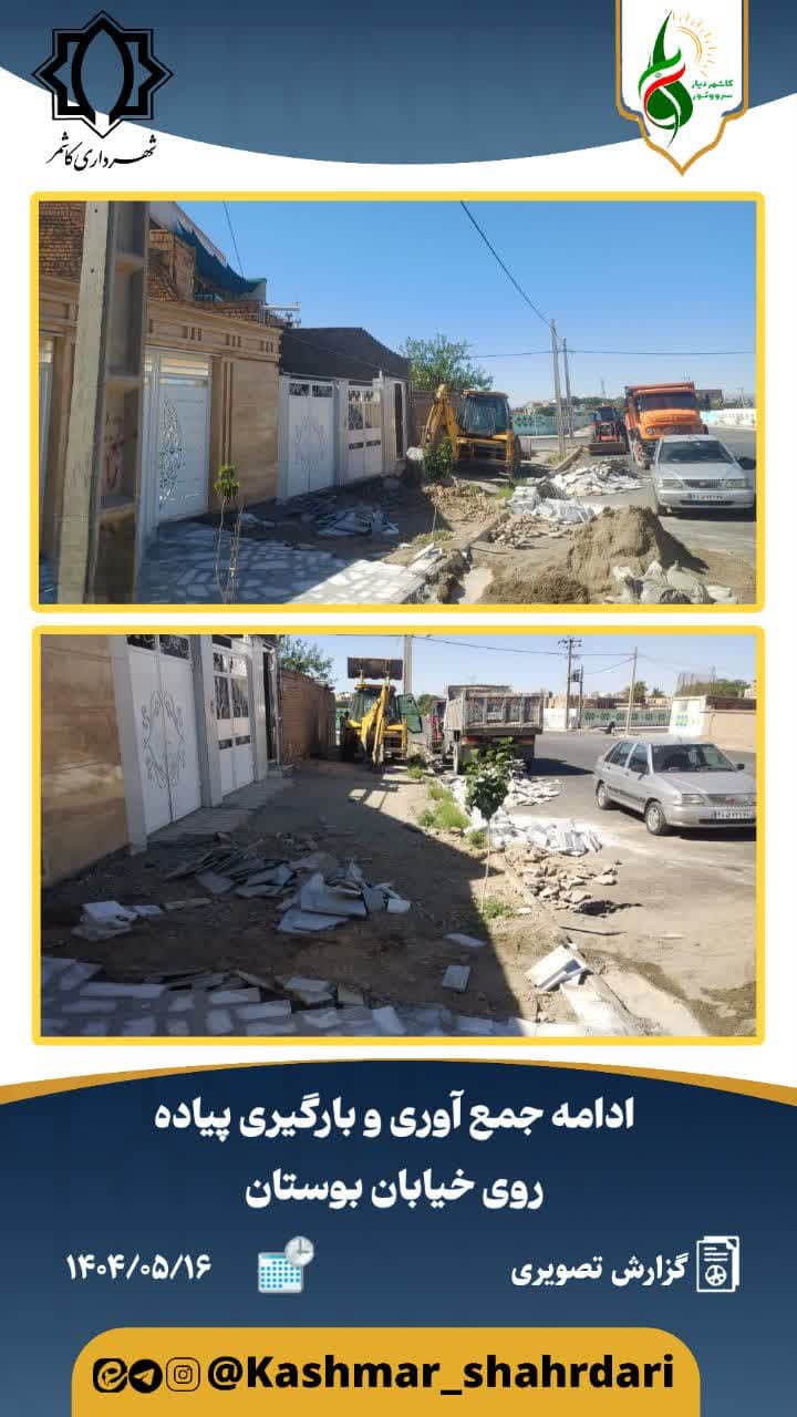 ادامه جمع آوری و بارگیری پیاده روی خیابان بوستان